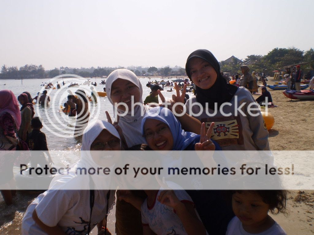 Sampai di pantai, udah rame banget deh. Nggak langsung ke air, tapi kami serombongan langsung buka tiker, satu tiket dari rumah, karena nggak cukup nyewa lagi satu, trus sarapan di pinggir pantai. Budhe-budhe yang ikut tadi sebelum berangkat udah nyiapin berbagai macam masakan (mie goreng, tempe tahu goreng, telur goreng, sambel, dll lupa gue), sampai teko, piring-piring, gelas-gelas, aqua kerdusan dibawa semua. That was the REAL picnic i'd done. Keren! Kurang lebih 17 anggota keluarga ngumpul jadi rame banget.
